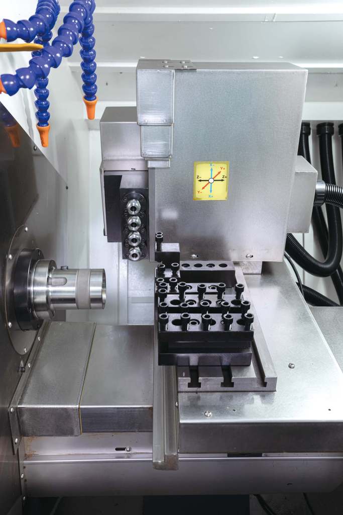 Ideal for φ35mm bars and φ50mm parts, equipped with 4,000 RPM spindle, power turret, and rigid base for heavy-duty turning and milling.